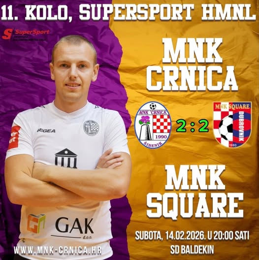 U sklopu 11. kola SuperSport HMNL, Crnica je u subotu, 14. veljače 2026., na Baldekinu ugostila dubrovački Square, a susret je završio neodlučenim rezultatom 2:2.