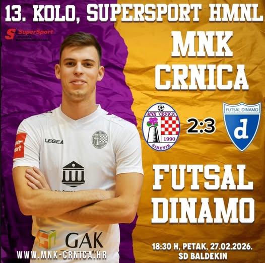 U susretu 13. kola SuperSport HMNL na Baldekinu, MNK Crnica je nakon sjajnog otvaranja i vodstva od 2:0 upisala poraz protiv Futsal Dinama rezultatom 2:3.